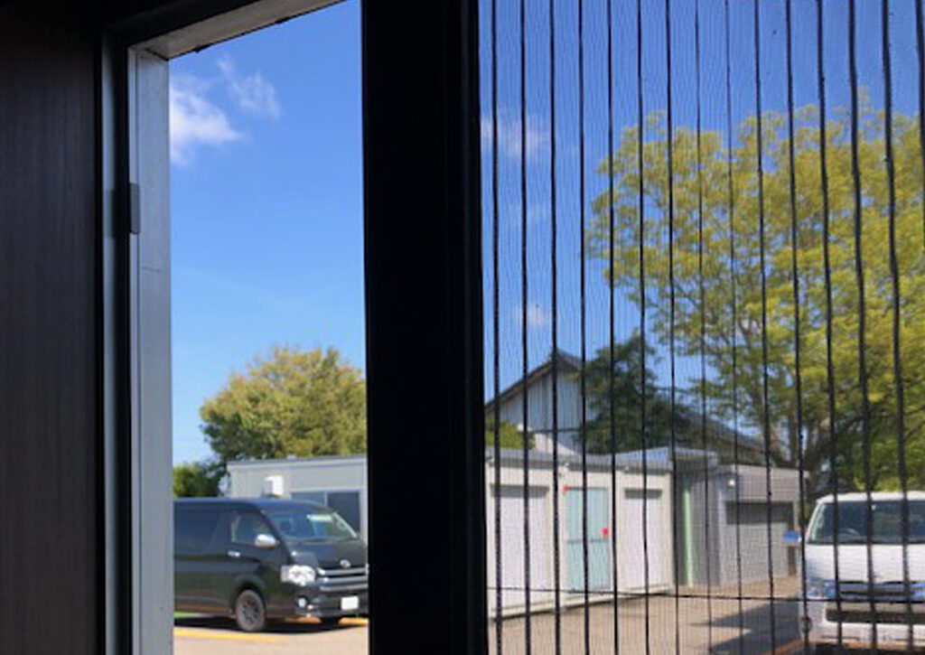 固定式網戸とは、出窓やルーバー窓のように固定の窓に設置するタイプです。取り外しも簡単なので、お掃除なども行いやすくなっています。