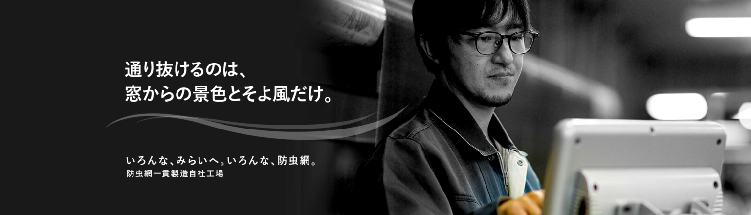 多種多様なニーズにお応えできるよう日々の商品の企画・開発はもちろん、特殊防虫網の調達・検査も行っております。さらに建材分野で培ったノウハウと技術、試験環境の整った地域性を生かし、安心してご利用いただける製品を供給することに挑戦し続けます。